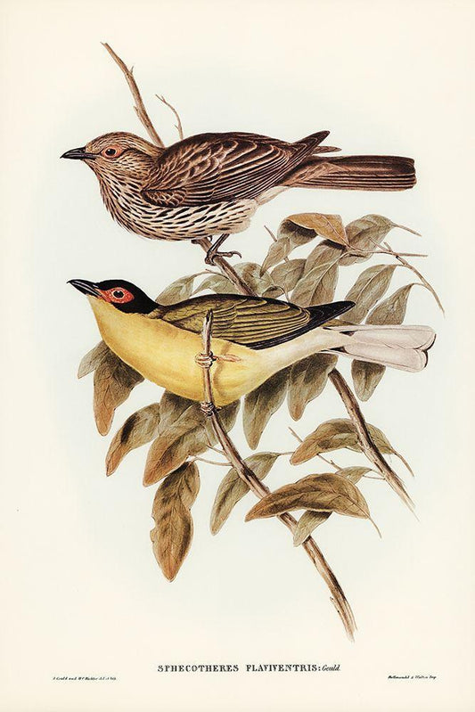 Yellow-bellied Sphecotheres-Sphecotheres flaviventris White Modern Wood Framed Art Print with Double Matting by Gould, John