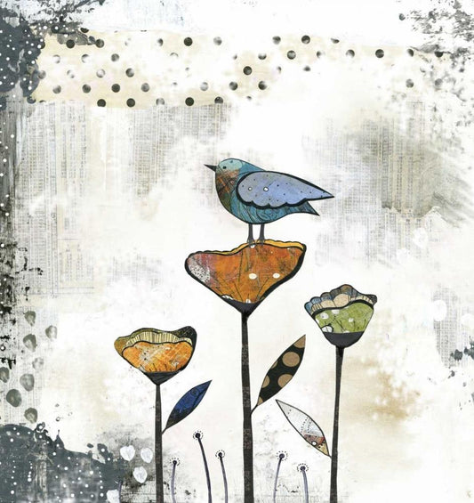 Bird on Three Flowers White Modern Wood Framed Art Print with Double Matting by Ogren, Sarah