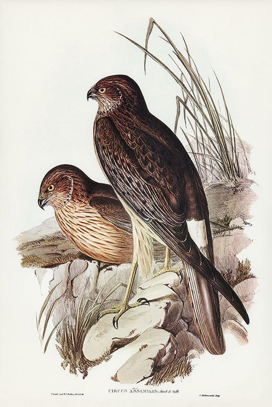 Allied Harrier-Circus assimilis White Modern Wood Framed Art Print with Double Matting by Gould, John