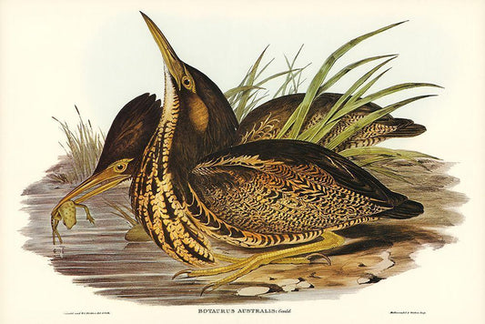 Australian Bittern-Botaurus Australis White Modern Wood Framed Art Print with Double Matting by Gould, John