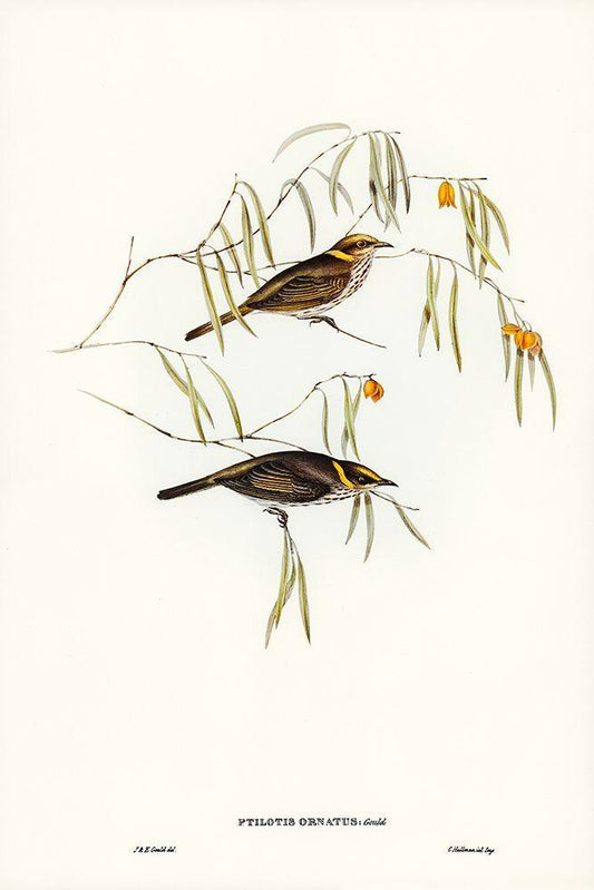 Graceful Honey-eater-Ptilotis ornatus White Modern Wood Framed Art Print with Double Matting by Gould, John