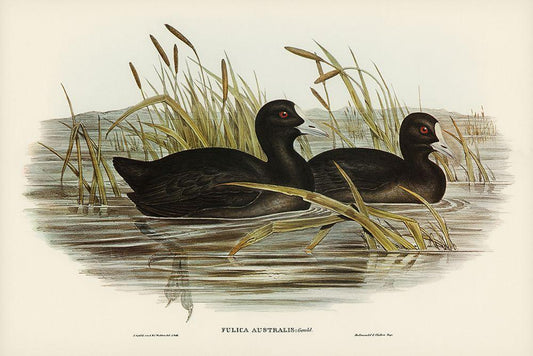 Australian Coot-Fulica Australis White Modern Wood Framed Art Print with Double Matting by Gould, John