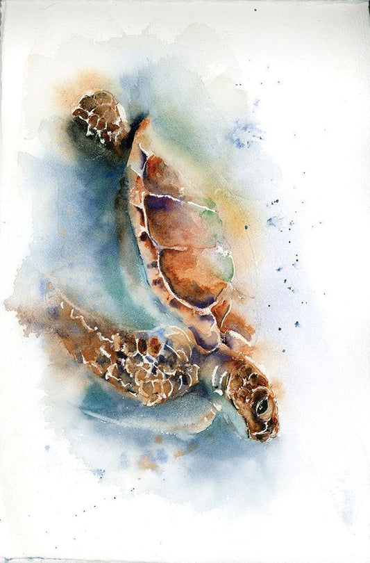 Diving Turtle White Modern Wood Framed Art Print with Double Matting by Shefranov, Olga
