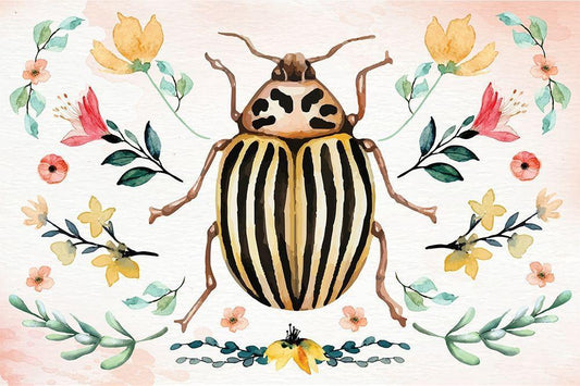 Insects II White Modern Wood Framed Art Print with Double Matting by ND Art