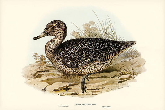 Freckled Duck-Anus naevosa White Modern Wood Framed Art Print with Double Matting by Gould, John