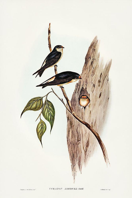 Tree Martin-Collocalia arborea White Modern Wood Framed Art Print with Double Matting by Gould, John