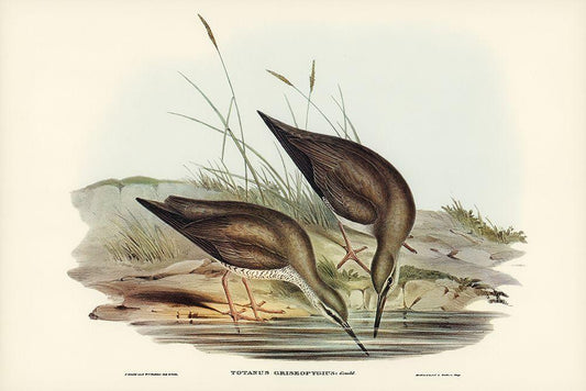 Grey-rumped Sandpaper-Totanus griseopygius White Modern Wood Framed Art Print with Double Matting by Gould, John