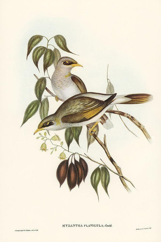 Yellow-throated Miner-Myzantha flavigula White Modern Wood Framed Art Print with Double Matting by Gould, John