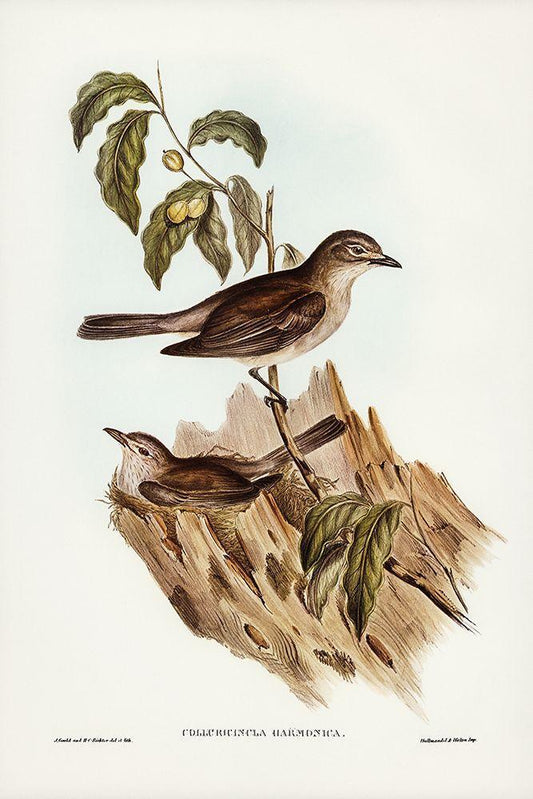 Harmonious Colluricincla-Colluricincla harmonica White Modern Wood Framed Art Print with Double Matting by Gould, John