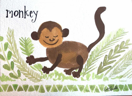 Monkey White Modern Wood Framed Art Print with Double Matting by Doucette, Katie