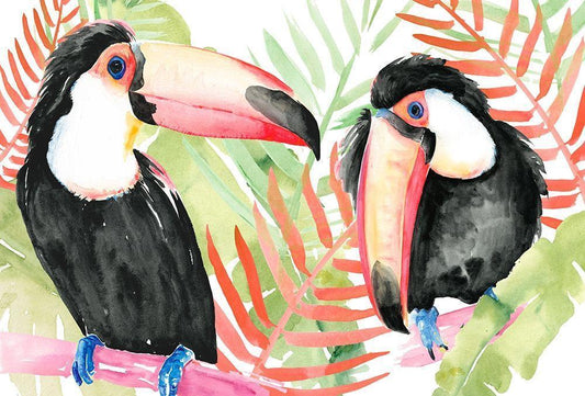 Toucan Palms Collection A White Modern Wood Framed Art Print with Double Matting by Parker, Jennifer Paxton