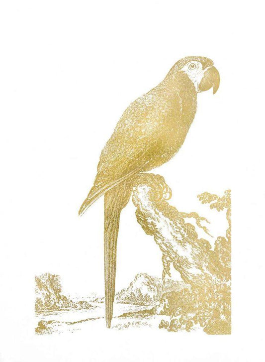 Gold Foil Parrot I White Modern Wood Framed Art Print with Double Matting by Edwards