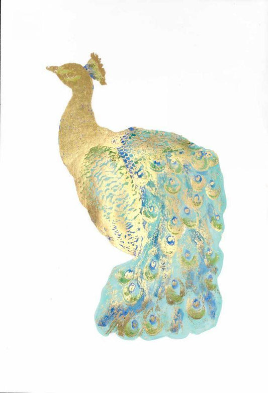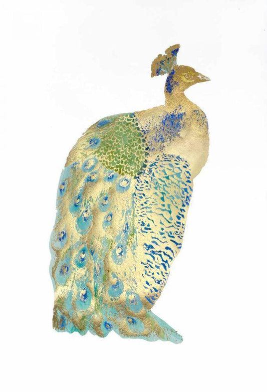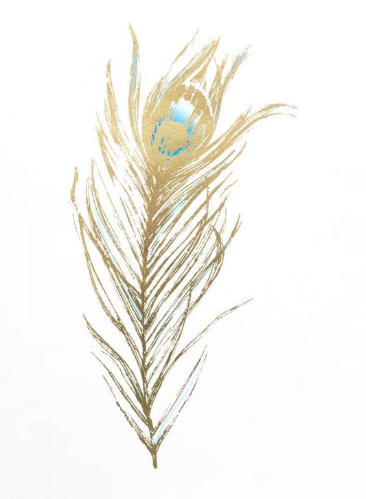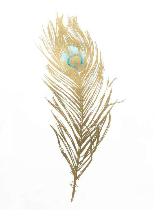 Gold Foil Peacock I with Hand Color White Modern Wood Framed Art Print with Double Matting by Popp, Grace