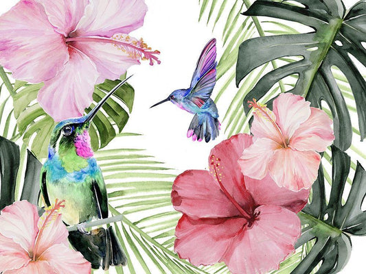 Hibiscus And Hummingbird Collection A White Modern Wood Framed Art Print with Double Matting by Parker, Jennifer Paxton