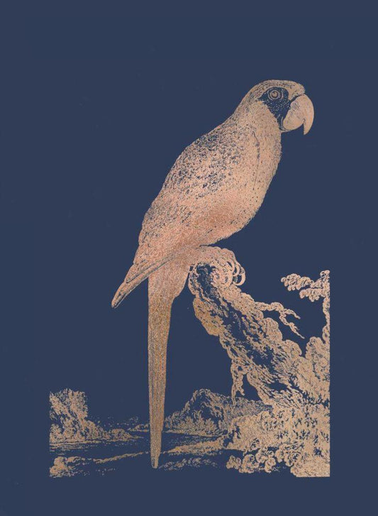 Rose Gold Foil Parrot II on Imperial Blue White Modern Wood Framed Art Print with Double Matting by Edwards