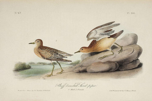 Buff Breasted Sandpiper (ASH) White Modern Wood Framed Art Print with Double Matting by Audubon, John James