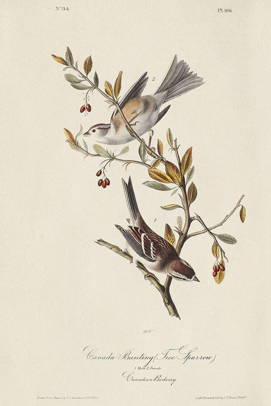Canada Bunting (ASH) White Modern Wood Framed Art Print with Double Matting by Audubon, John James