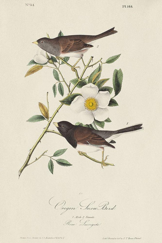 Oregon Snow Bird (ASH) White Modern Wood Framed Art Print with Double Matting by Audubon, John James