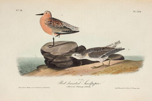 Red Breasted Sandpiper White Modern Wood Framed Art Print with Double Matting by Audubon, John James