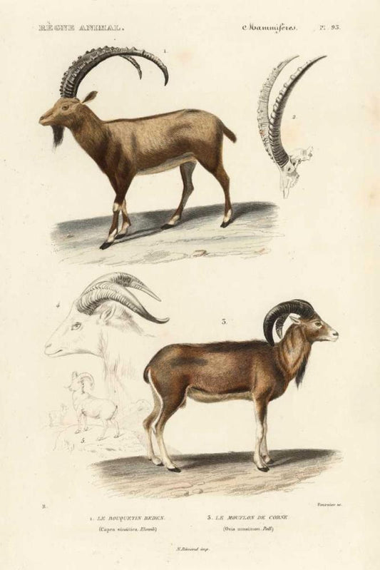 Antique Antelope and Ram Study White Modern Wood Framed Art Print with Double Matting by Remond, N.