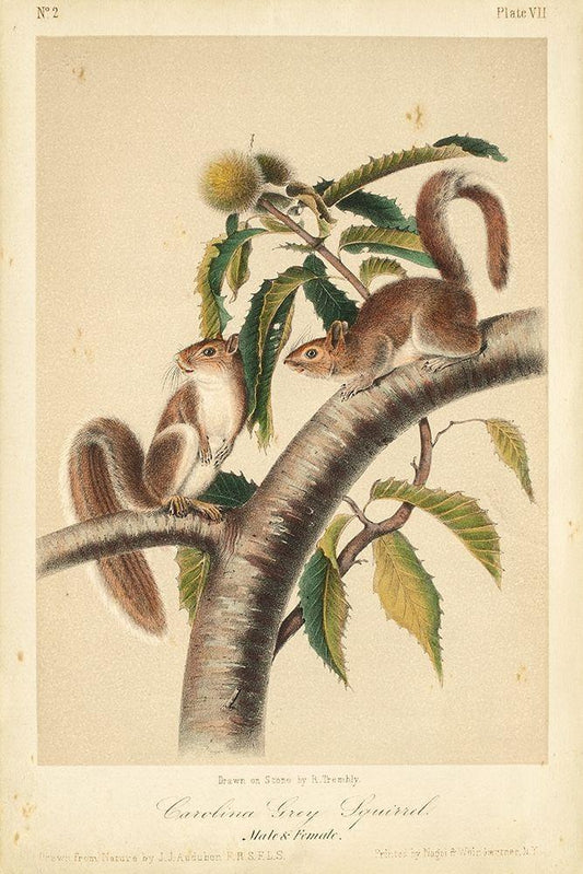 Audubon Squirrel I White Modern Wood Framed Art Print with Double Matting by Audubon, John James