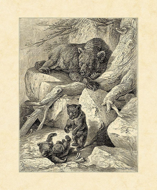 Vintage Common Brown Bear White Modern Wood Framed Art Print with Double Matting by Specht, Friedrich