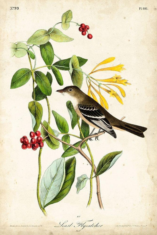 Audubon Bird and Botanical II White Modern Wood Framed Art Print with Double Matting by Audubon, John James