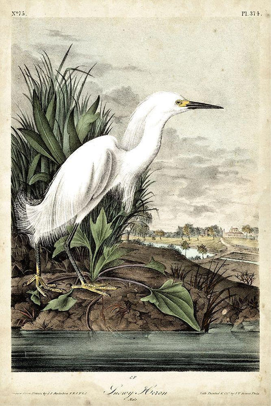 Snowy Heron White Modern Wood Framed Art Print with Double Matting by Audubon, John James