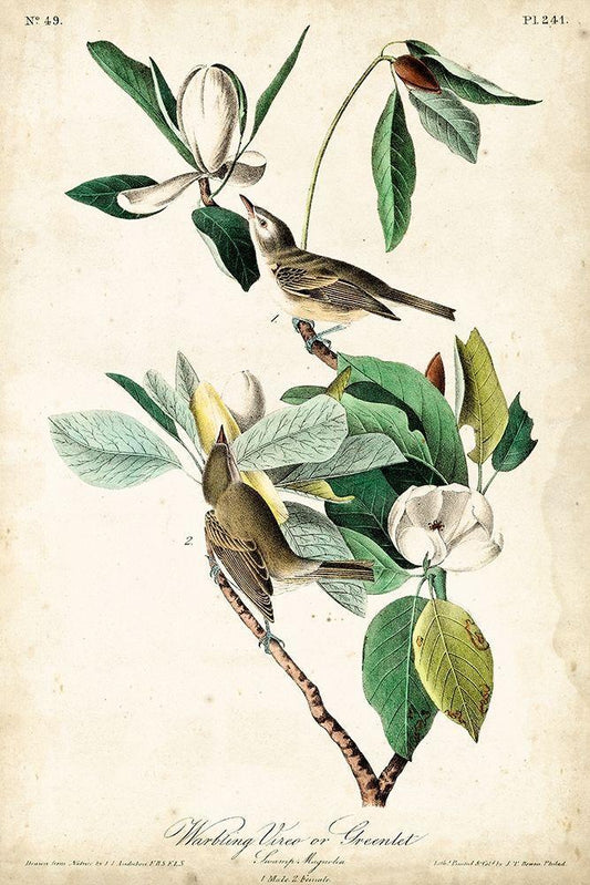 UA CH Warbling Vireo White Modern Wood Framed Art Print with Double Matting by Audubon, John James