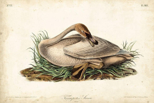 Trumpeter Swan I White Modern Wood Framed Art Print with Double Matting by Audubon, John James