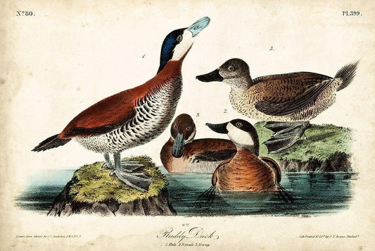 Audubon Ducks I White Modern Wood Framed Art Print with Double Matting by Audubon, John James