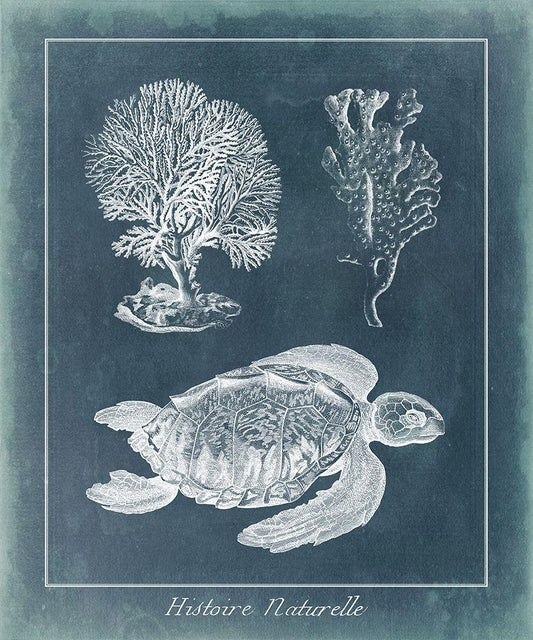 Azure Sea Turtle Study I White Modern Wood Framed Art Print with Double Matting by Vision Studio