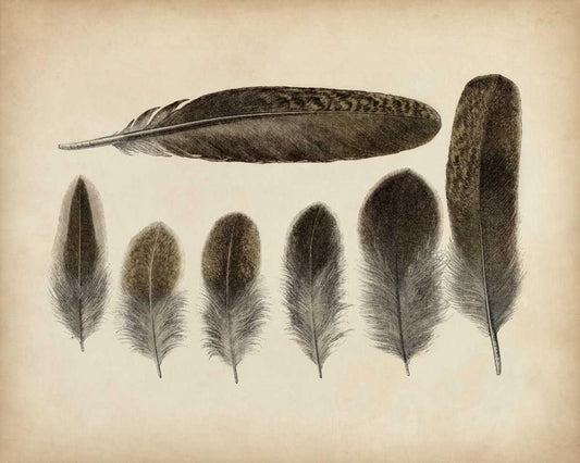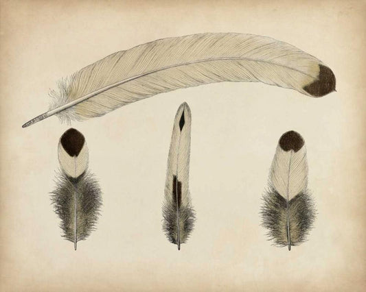 Vintage Feathers I White Modern Wood Framed Art Print with Double Matting by Unknown
