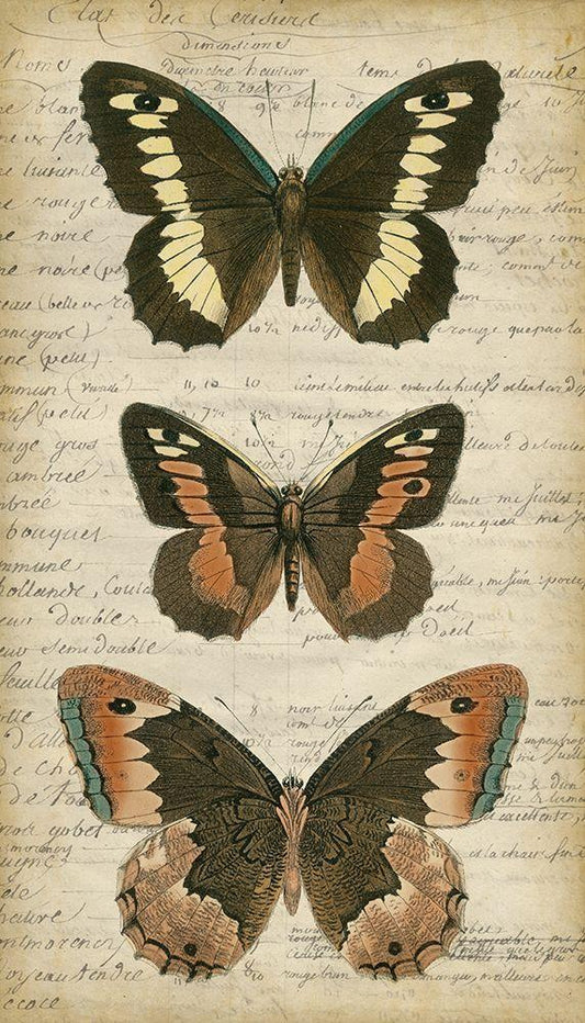 Butterfly Script I White Modern Wood Framed Art Print with Double Matting by Vision Studio