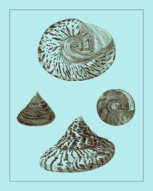 Tinted Shells on Aqua I White Modern Wood Framed Art Print with Double Matting by Vision Studio