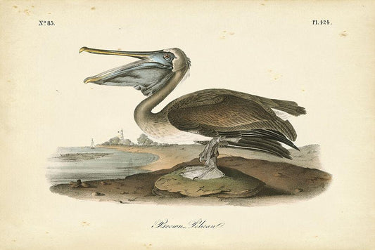Audubons Brown Pelican White Modern Wood Framed Art Print with Double Matting by Audubon, John James
