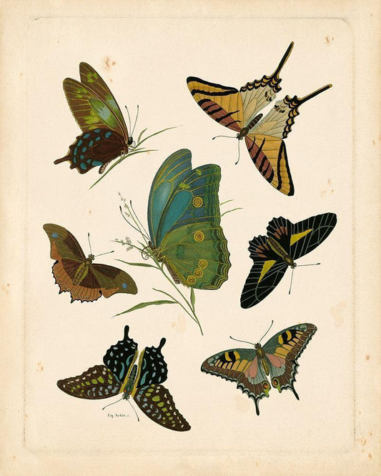 Antique Entomology I White Modern Wood Framed Art Print with Double Matting by Vision Studio