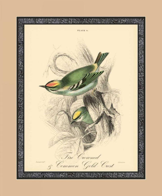 Printed Fire-Crowned Crest White Modern Wood Framed Art Print with Double Matting by Apogee Art Services