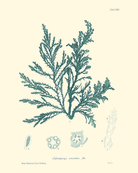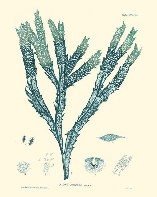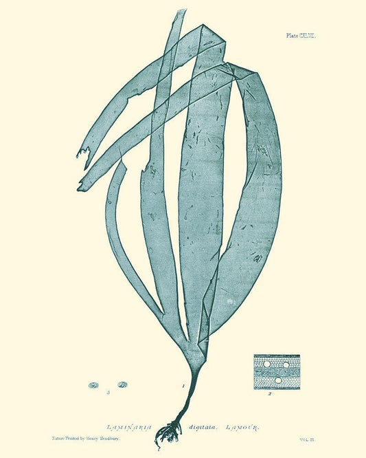 Nature Print in Aqua I White Modern Wood Framed Art Print with Double Matting by Vision Studio