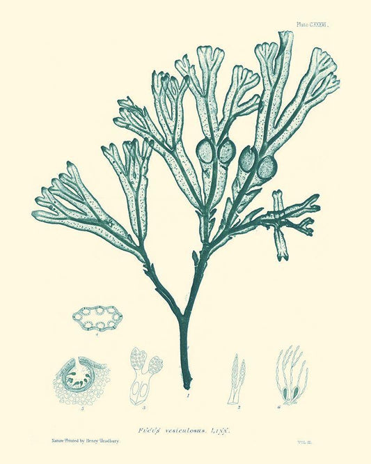 Nature Print in Aqua III White Modern Wood Framed Art Print with Double Matting by Vision Studio