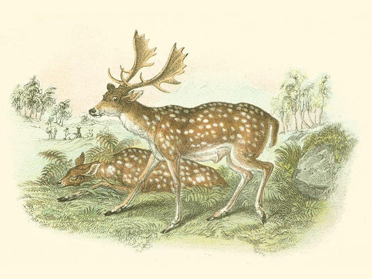 Petite Fallow Deer White Modern Wood Framed Art Print with Double Matting by Lizars, W.H.