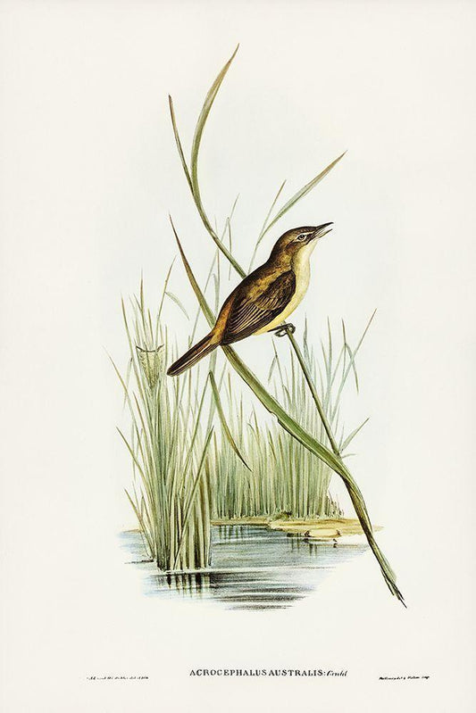 Reed Warbler-Acrocephalus Australis White Modern Wood Framed Art Print with Double Matting by Gould, John