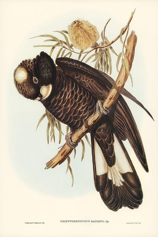 Baudins Cockatoo-Calyptorhynchus Baudinii White Modern Wood Framed Art Print with Double Matting by Gould, John