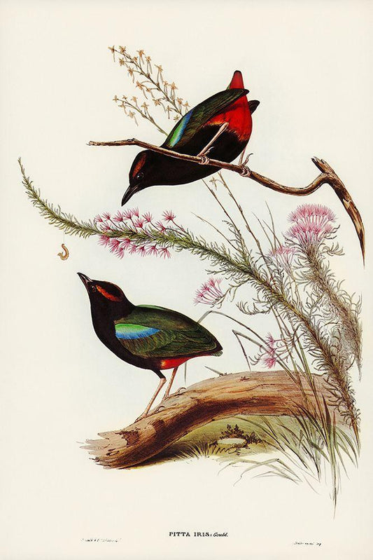 Rainbow Pitta-Pitta Iris White Modern Wood Framed Art Print with Double Matting by Gould, John