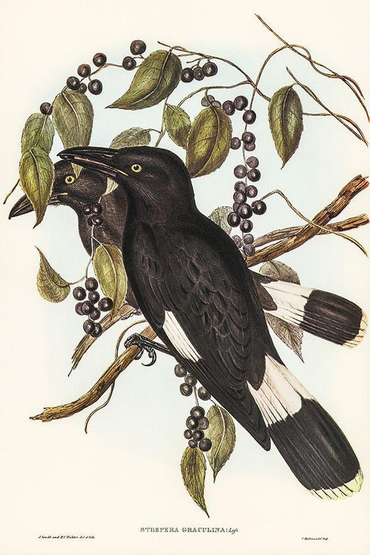 Great Crow-Shrike-Strepera graculina White Modern Wood Framed Art Print with Double Matting by Gould, John