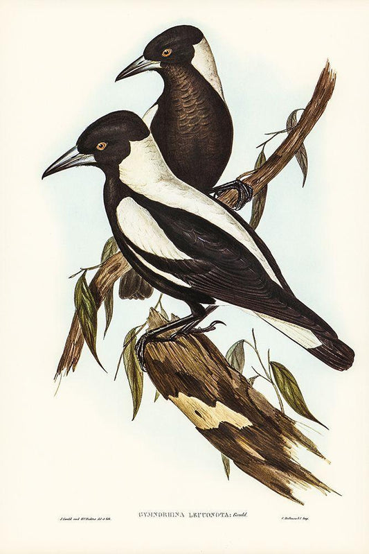 White-backed Crow-Shrike-Gymnorhina leuconota White Modern Wood Framed Art Print with Double Matting by Gould, John