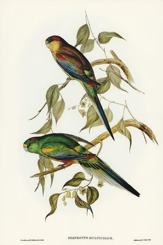 Many-coloured Parakeet-Psephotus multicolor White Modern Wood Framed Art Print with Double Matting by Gould, John