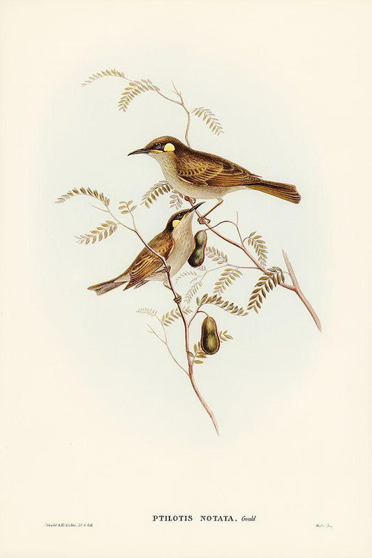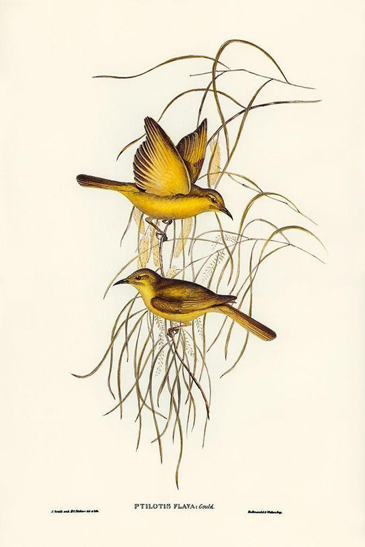 Yellow Honey-eater-Ptilotis flava White Modern Wood Framed Art Print with Double Matting by Gould, John