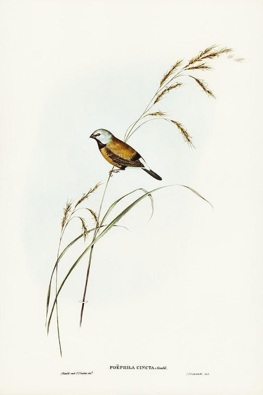 Banded Grass Finch-Poephila cincta White Modern Wood Framed Art Print with Double Matting by Gould, John
