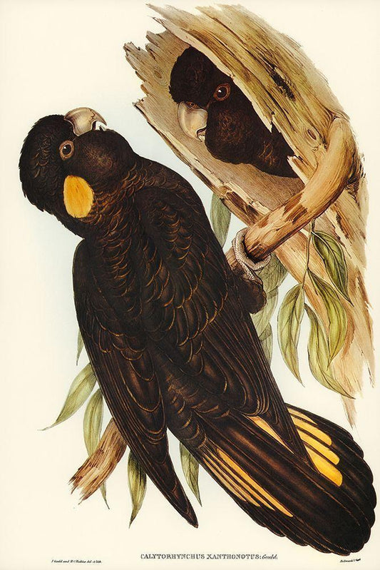 Yellow-eared Black Cockatoo-Calyptorhynchus xanthonotus White Modern Wood Framed Art Print with Double Matting by Gould, John